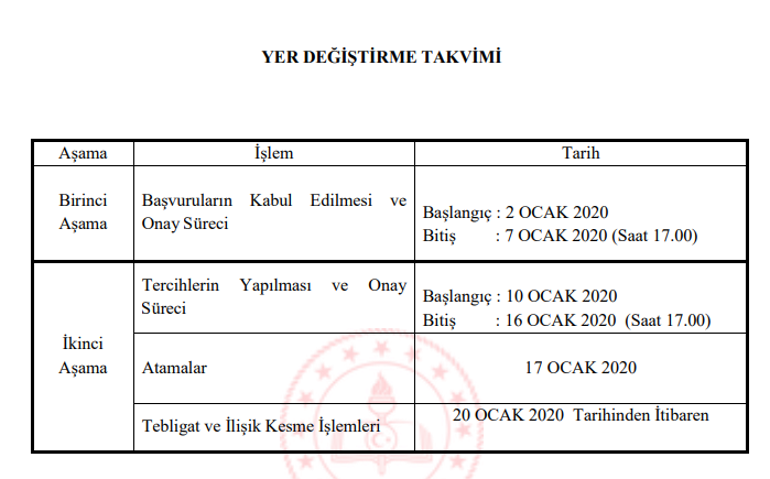 2019 il ici yer degistirme atamalari hangi tarihte yapilacak 2019 yili ogretmen atama ve yer degistirme